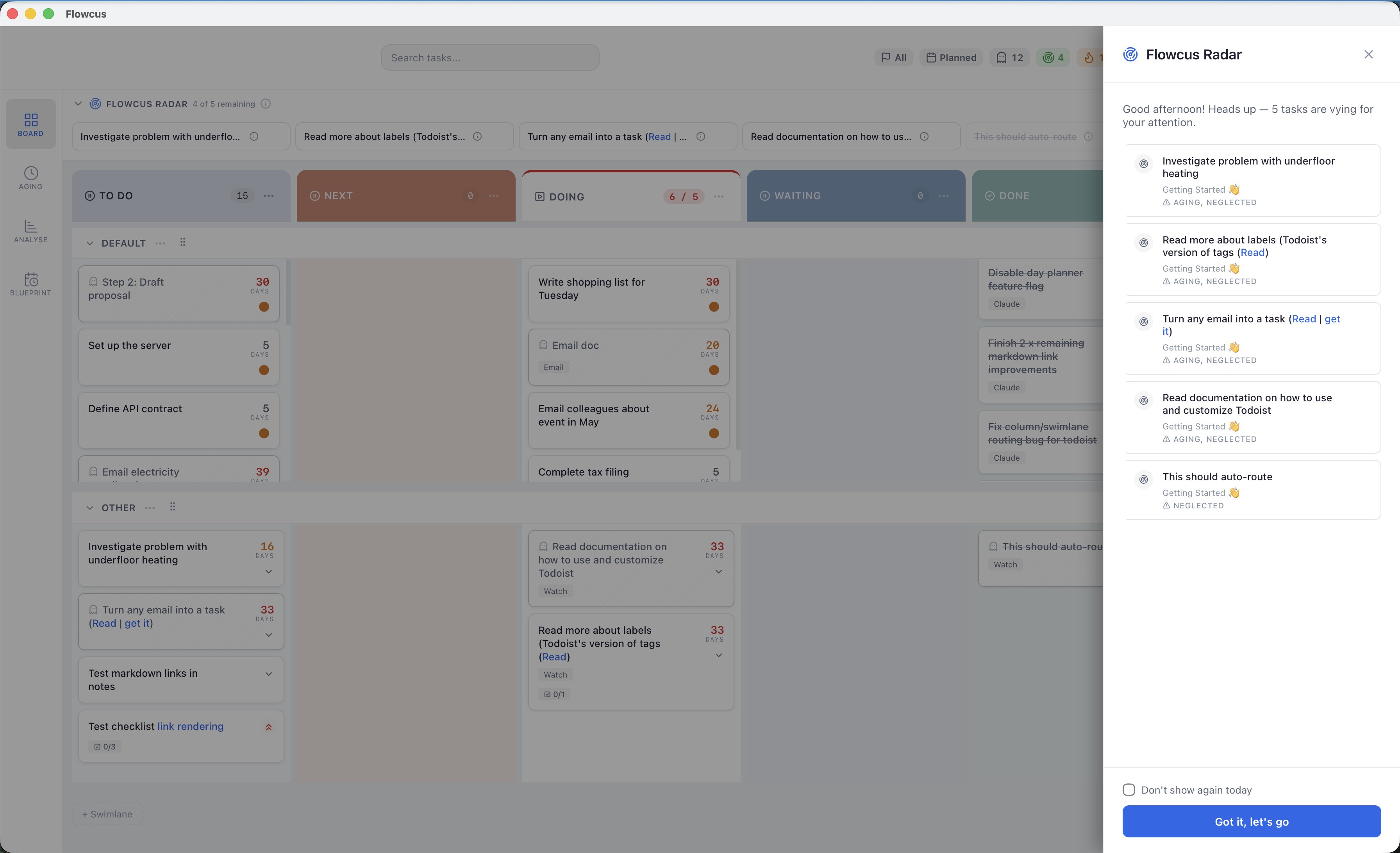 Visual task intelligence for OmniFocus, Things, Todoist and TaskPaper on macOS